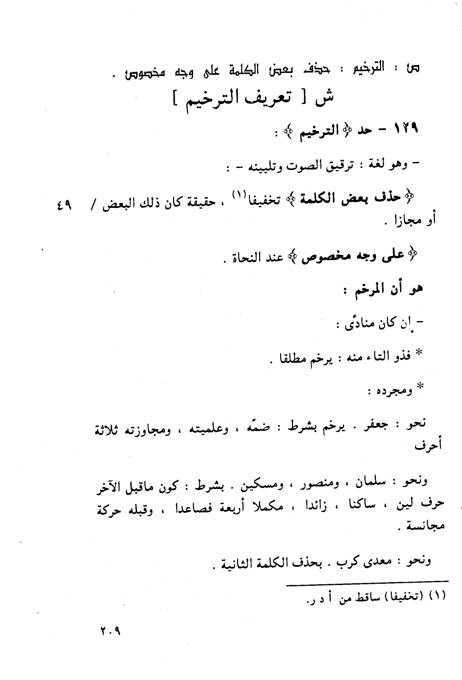 {حذف بعض الكلمة} تخفيفا, حقيقة كان ذلك البعض / 49 أو مجازا.