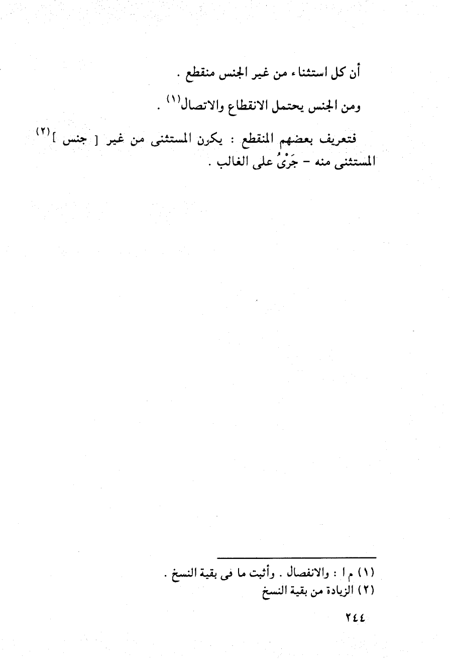 أن كل استثناء من غير الجنس منقطع.