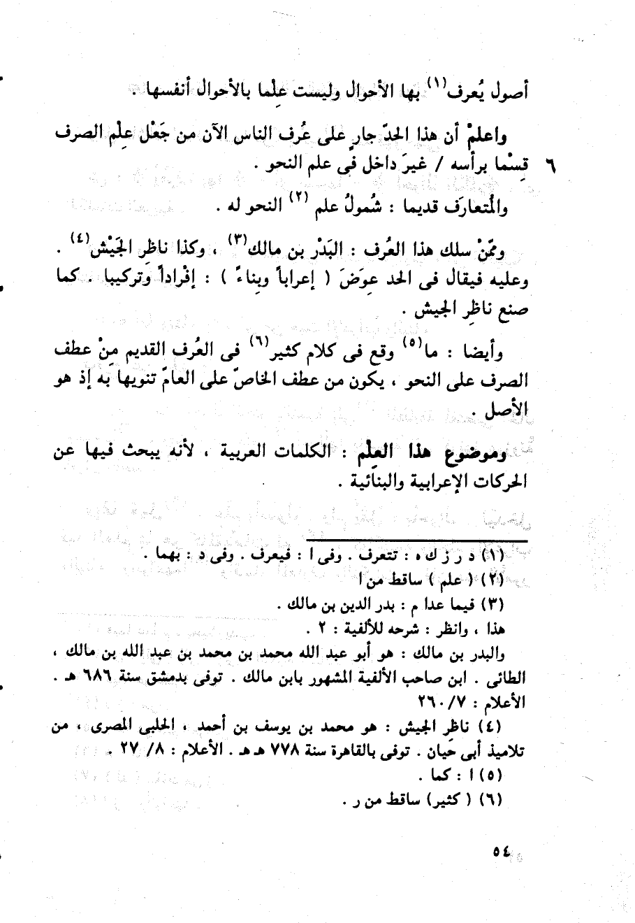 واعلم أن هذا الحد جار على عرف الناس الآن من جعل علم الصرف 6 قسما برأسه / غير داخل في علم النحو.