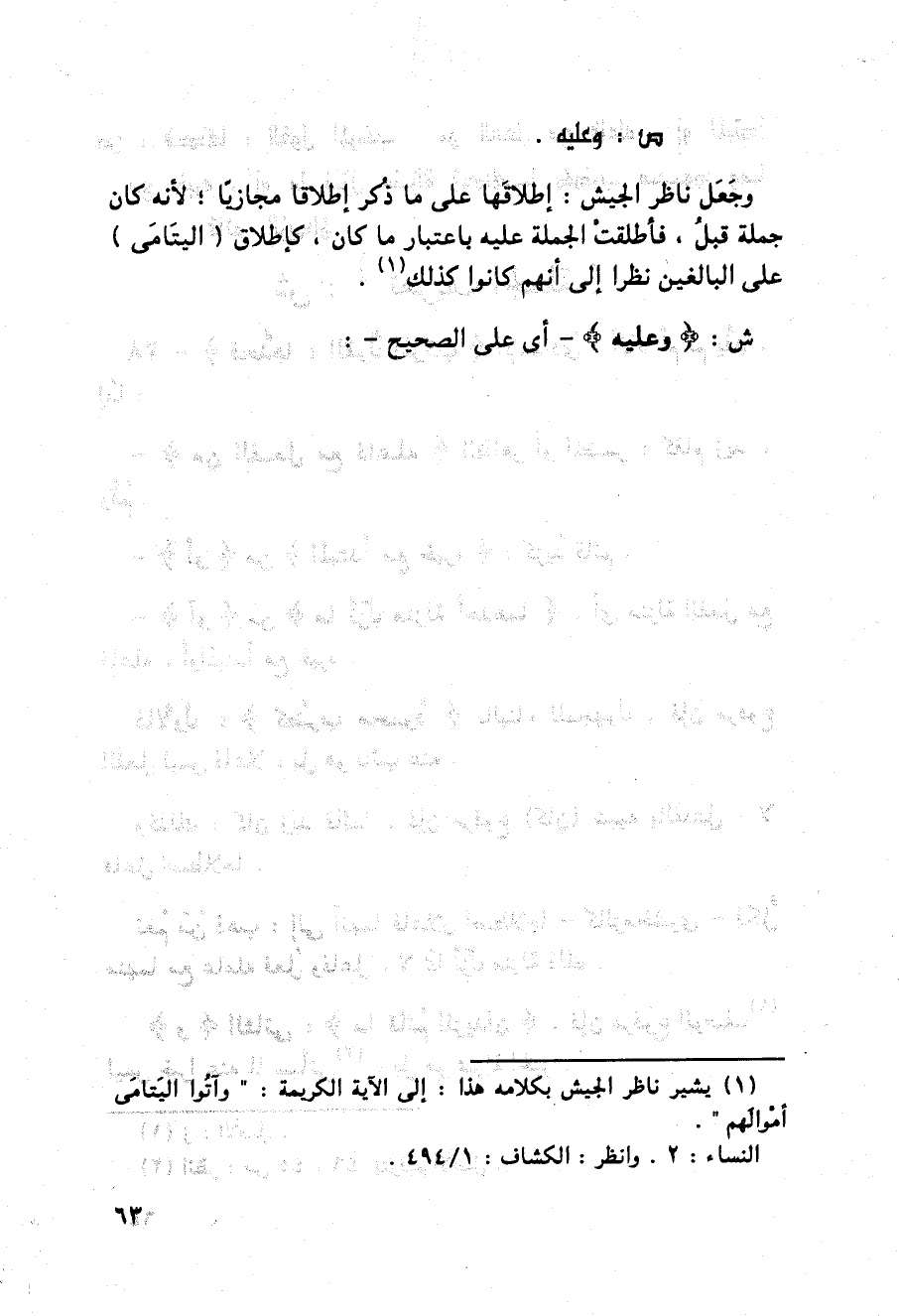 وجعل ناظر الجيش: إطلاقها على ما ذكر إطلاقا مجازيا, لأنه كان جملة قبل, فأطلقت الجملة عليه باعتبار ما كان, كإطلاق (اليتامى) على البالغين نظرا إلى أنهم كانوا كذلك.