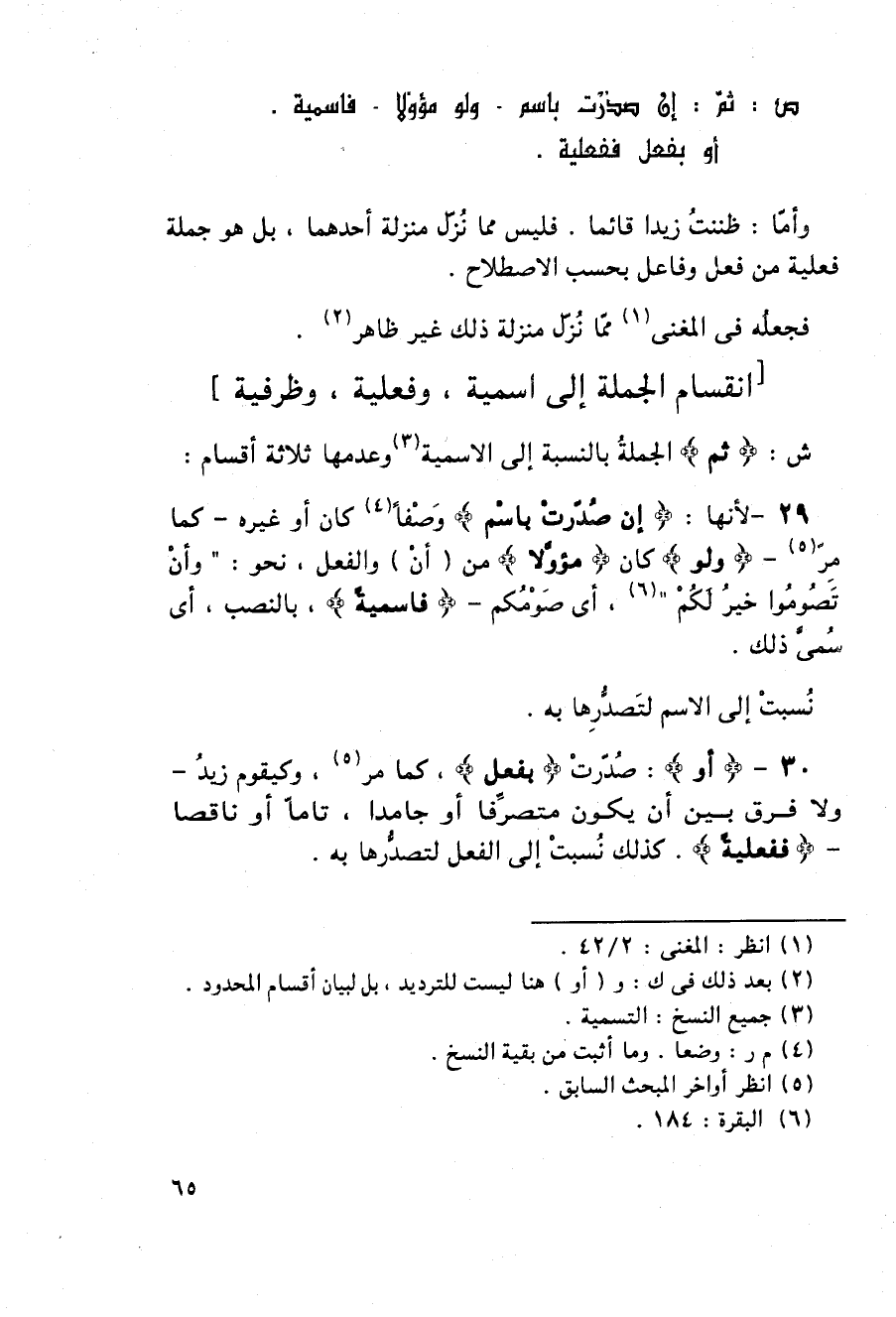 ش: {ثم} الجملة بالنسبة إلى الاسمية, وعدمها ثلاثة أقسام: