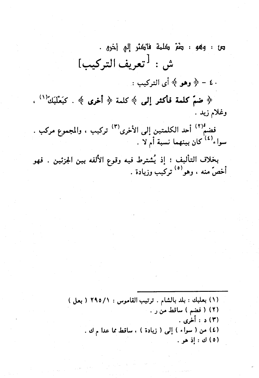 فضم أحد الكلمتين إلى الأخرى تركيب, والمجموع مركب. سواء كان بينهما نسبة أم لا.
