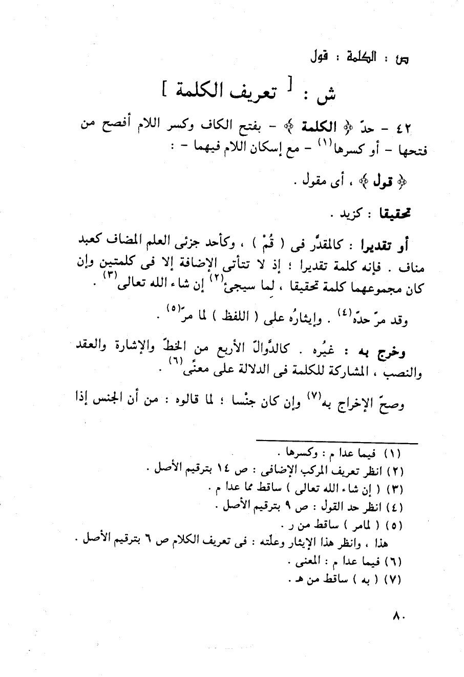 42 - حد {الكلمة} - بفتح الكاف وكسر اللام أفصح من فتحها - أو كسرها - مع إسكان اللام فيهما -:
