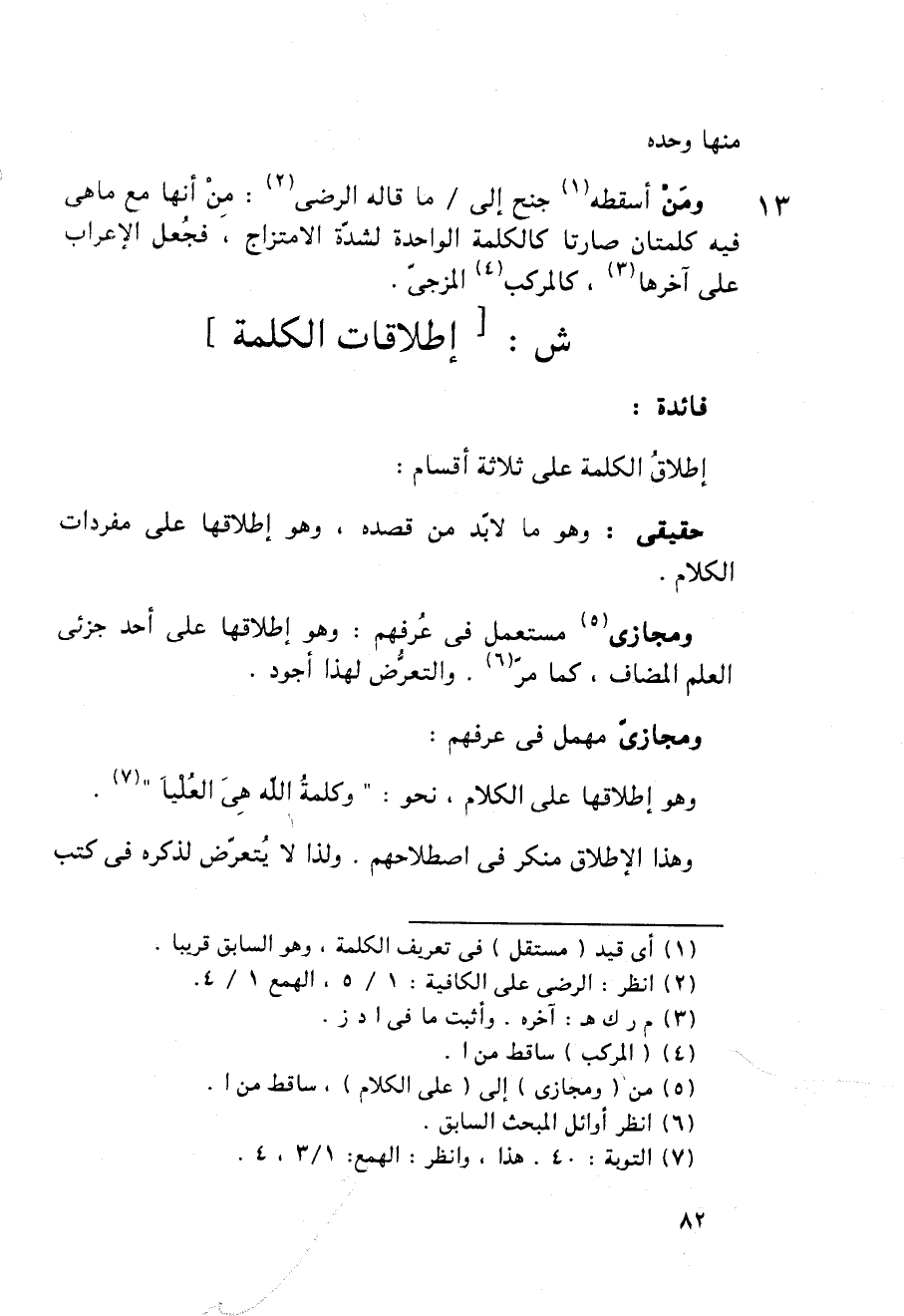 13 ومن أسقطه جنح إلى / ما قاله الرضى: من أنها مع ما هى فيه كلمتان صارتا كالكلمة الواحدة لشدة الامتزاج, فجعل الإعراب على آخرها, كالمركب المزجى.