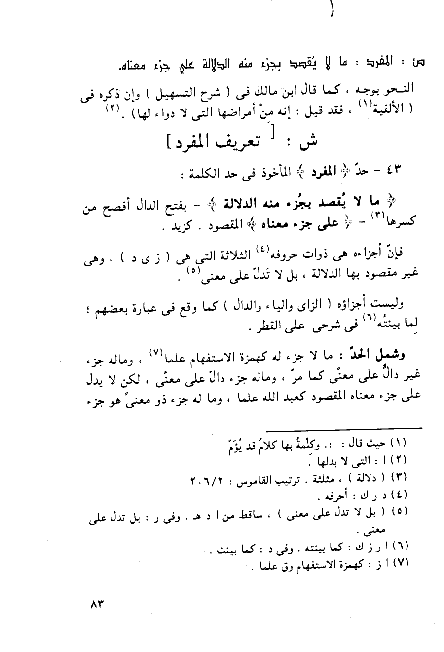 43 - حد {المفرد} المأخوذ في حد الكلمة: