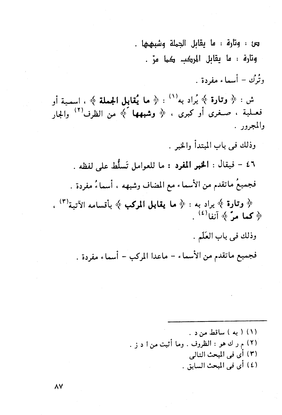 ش: {وتارة} يراد به: {ما يقابل الجملة} , اسمية أو فعلية, صغرى أو كبرى, {وشبهها} من الظرف والجار والمجرور.