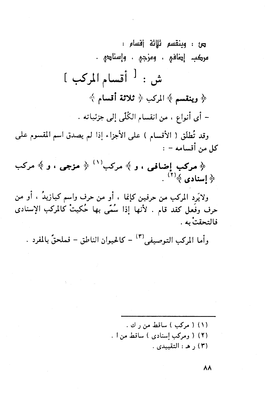 {مركب إضافى, و} مركب {مزجى, و} مركب {إسنادى}.