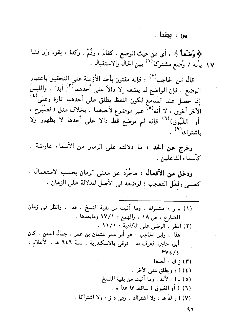 قال ابن الحاجب: فإنه مقترن بأحد الأزمنة على التحقيق باعتبار الوضع, فإن الواضع لم يضعه إلا دالًا على أحدهما أبدا, واللبس إنما حصل عند السامع لكون اللفظ يطلق على أحدهما أبدا, واللبس إنما حصل عند السامع لكون اللفظ يطلق على أحدهما تارة وعلى الآخر أخرى. لا أنه غير موضوع لأحدهما. بخلاف مثل (الصبوح, أو الغيوق فإنه لم يوضع قط دالا على أحدها لا بظهور ولا باشتراك.