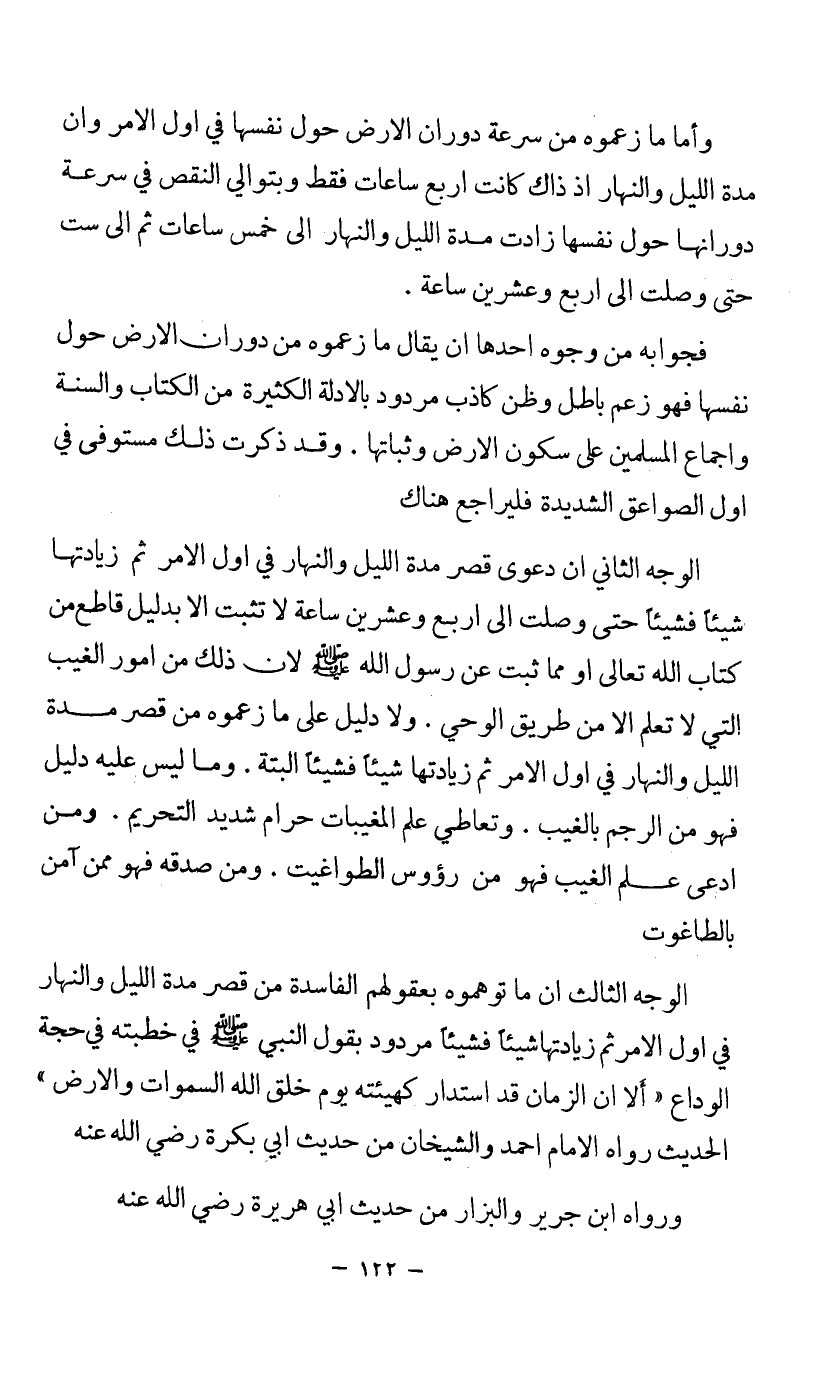 الوجه الثالث: أن ما توهموه بعقولهم الفاسدة من قصر مدة الليل والنهار في أول الأمر، ثم زيادتها شيئا فشيئا مردود بقول النبي - صلى الله عليه وسلم - في خطبته في حجة الوداع «ألا أن الزمان قد استدار كهيئته يوم خلق الله السموات والأرض» الحديث رواه الإمام أحمد والشيخان من حديث أبي بكرة رضي الله عنه.