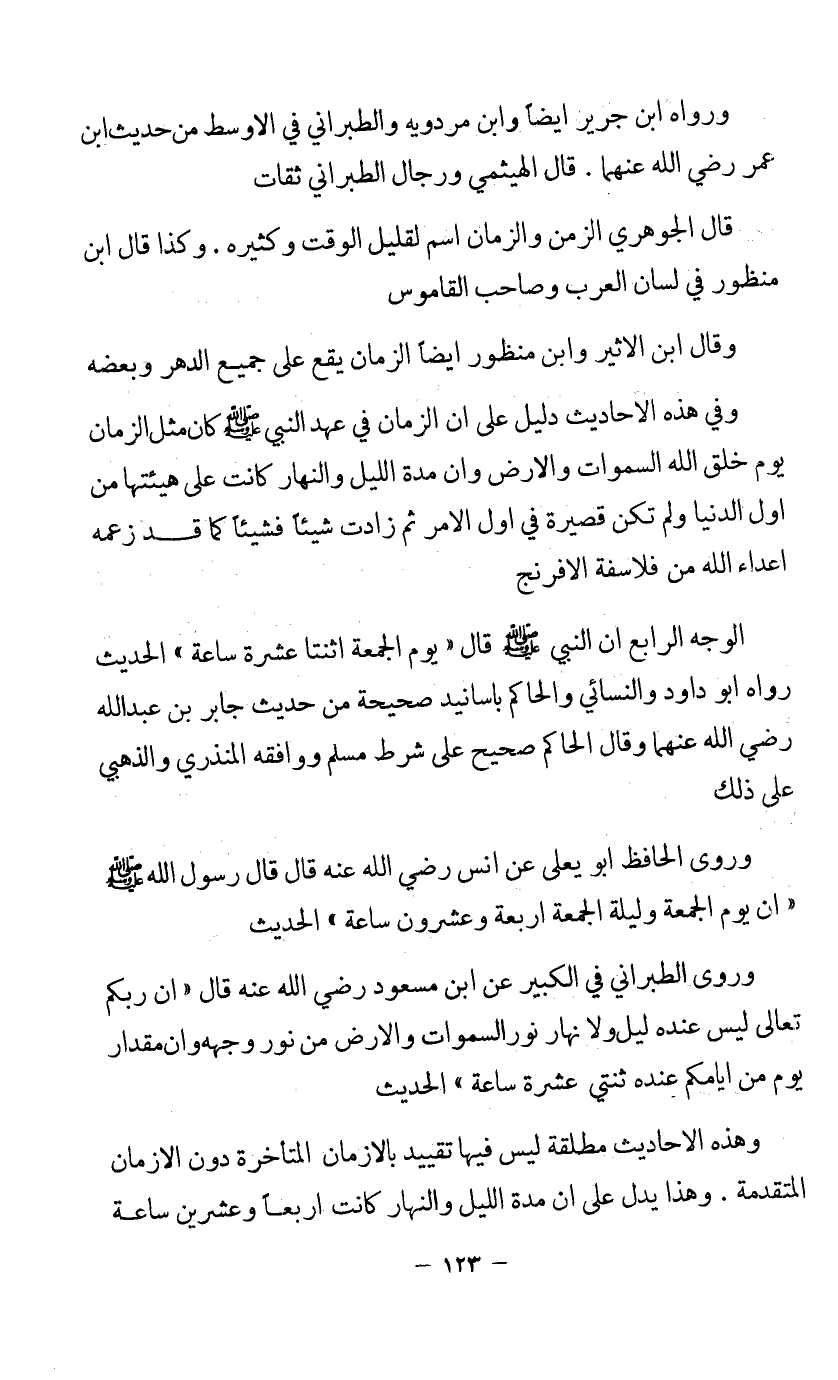 الوجه الرابع: أن النبي - صلى الله عليه وسلم - قال «يوم الجمعة اثنتا عشرة ساعة» الحديث رواه أبو داود والنسائي والحاكم بأسانيد صحيحة من حديث جابر بن عبد الله رضي الله عنهما، وقال الحاكم صحيح على شرط مسلم ووافقه المنذري والذهبي على ذلك.