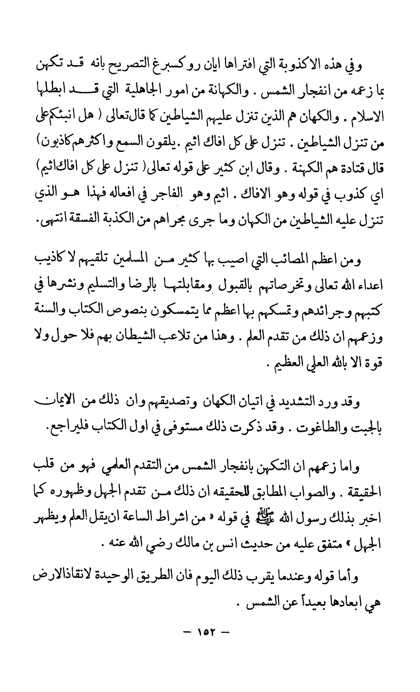 وقد ورد التشديد في إتيان الكهان وتصديقهم وأن ذلك من الإيمان بالجبت والطاغوت، وقد ذكرت ذلك مستوفيًا في أول الكتاب فليراجع.