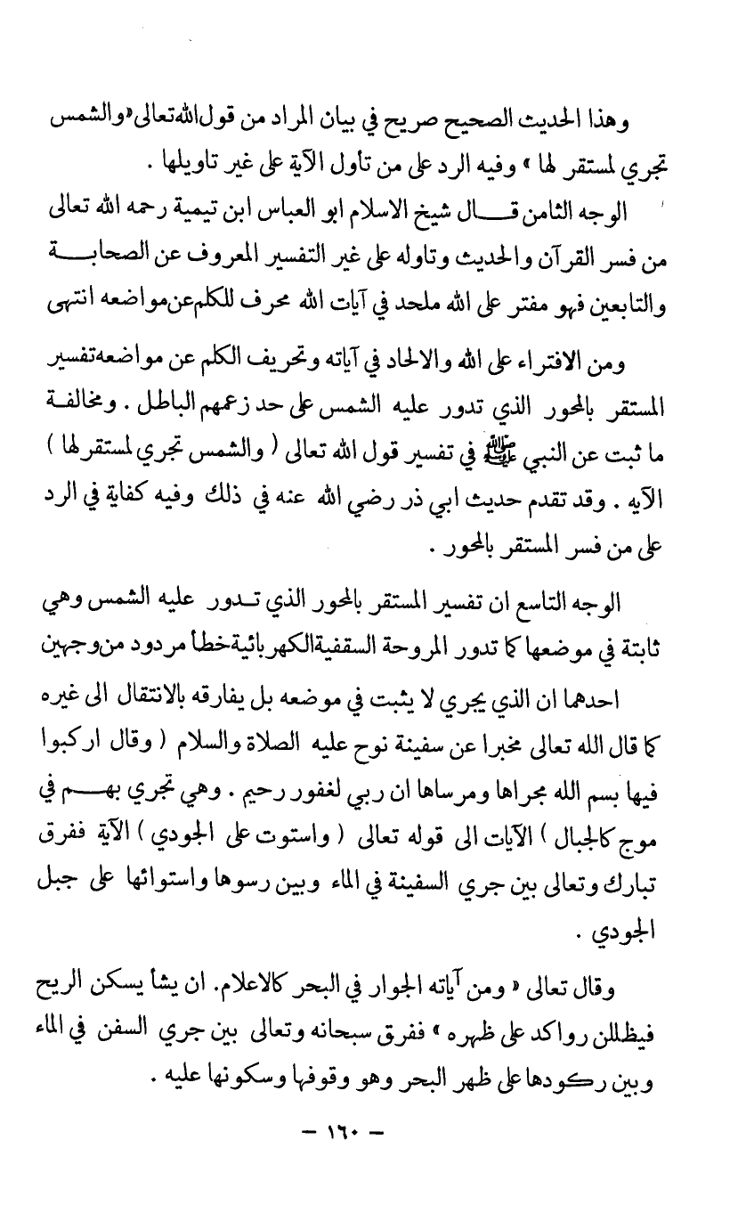 الوجه التاسع أن تفسير المستقر بالمحور الذي تدور عليه الشمس وهي ثابتة في موضعها كما تدور المروحة السقفية الكهربائية خطأ مردود من وجهين.