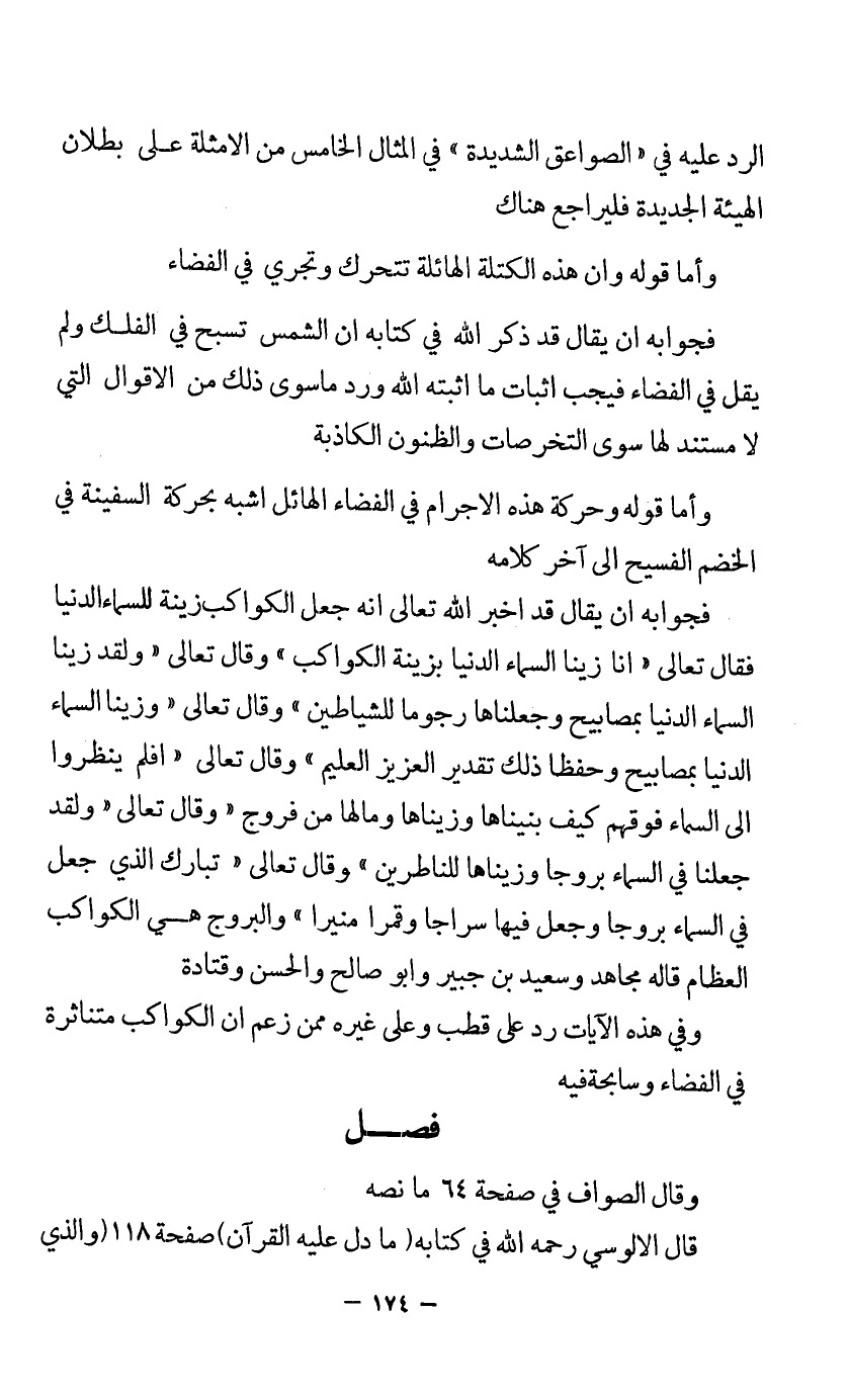 وأما قوله وحركة هذه الأجرام في الفضاء الهائل أشبه بحركة السفينة في الخضم الفسيح إلى آخر كلامه.