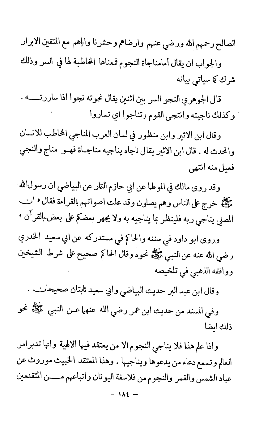 وإذا علم هذا فلا يناجي النجوم إلا من يعتقد فيها الإلهية وأنها تدبر أمر العالم وتسمع دعاء من يدعوها ويناجيها. وهذا المعتقد الخبيث موروث عن عباد الشمس والقمر والنجوم من فلاسفة اليونان وأتباعهم من المتقدمين