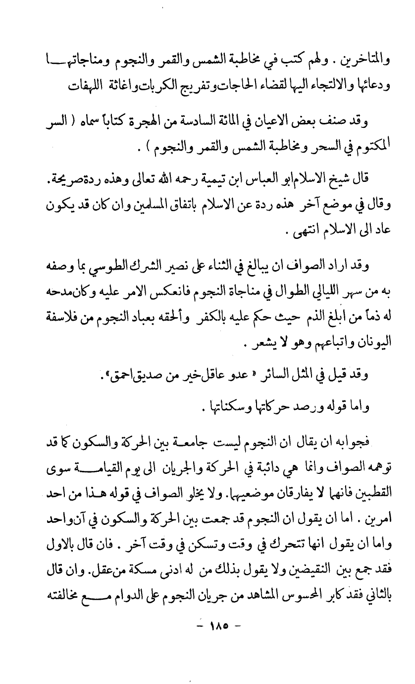 والمتأخرين. ولهم كتب في مخاطبة الشمس والقمر والنجوم ومناجاتها ودعائها والالتجاء إليها لقضاء الحاجات وتفريج الكربات وإغاثة اللهفان.