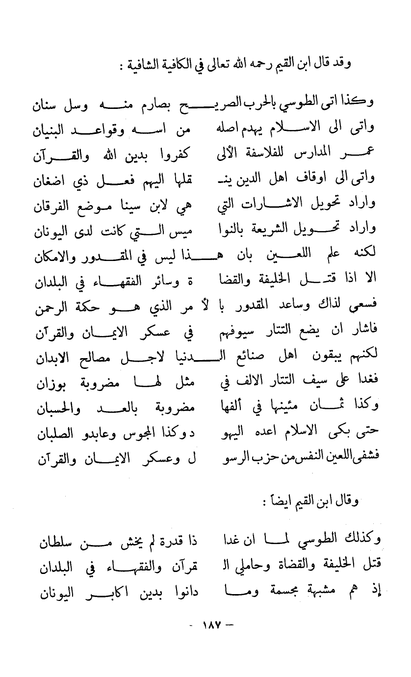 وقد قال ابن القيم رحمه الله تعالى في الكافية الشافية: