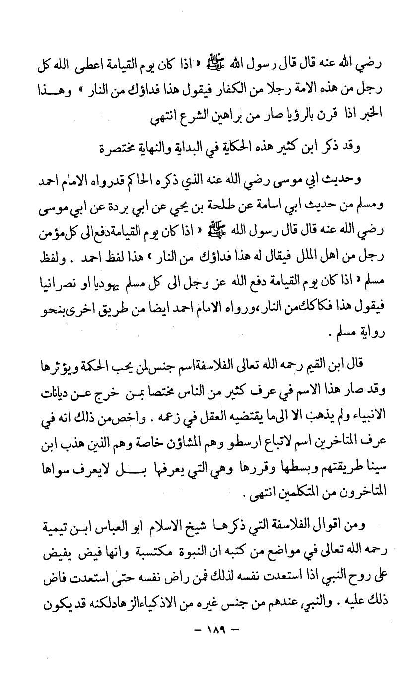 رضي الله عنه قال: قال رسول الله - صلى الله عليه وسلم - «إذا كان يوم القيامة أعطى الله كل رجل من هذه الأمة رجلا من الكفار فيقول: هذا فداؤك من النار» وهذا الخبر إذا قرن بالرؤيا صار من براهين الشرع. انتهى.