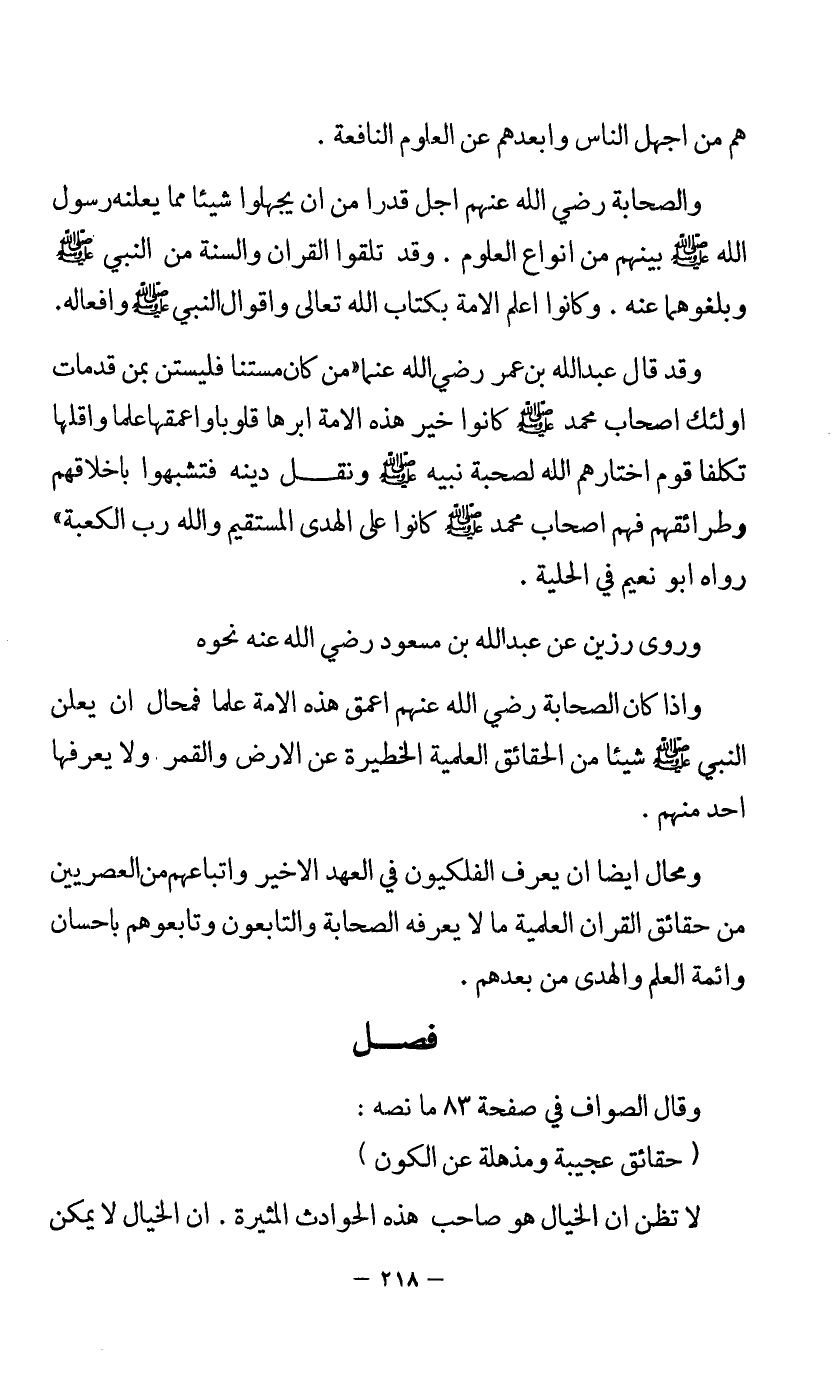 ومحال أيضا أن يعرف الفلكيون في العهد الأخير وأتباعهم من العصريين من حقائق القرآن العلمية ما يعرفه الصحابة والتابعون وتابعوهم بإحسان وأئمة العلم والهدى من بعدهم.