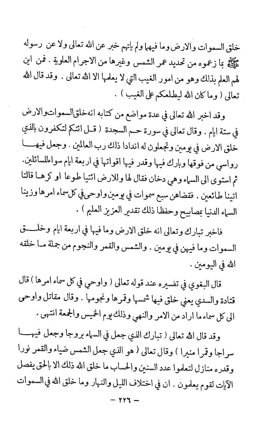 خلق السموات والأرض وما فيهما ولم يأتهم خبر عن الله تعالى ولا عن رسوله - صلى الله عليه وسلم - بما زعموه من تحديد عمر الشمس وغيرها من الأجرام العلوية. فمن أين لهم العلم بذلك وهو من أمور الغيب التي لا يعلمها إلا الله تعالى. وقد قال الله تعالى {وَمَا كَانَ اللَّهُ لِيُطْلِعَكُمْ عَلَى الْغَيْبِ}.