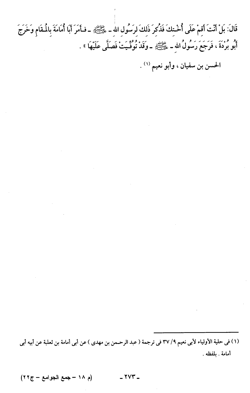 (¬1) في حلية الأولياء لأبى نعيم 9/ 37 في ترجمة (عبد الرحمن بن مهدى) عن أبى أمامة بن ثعلبة عن أبيه أبى أمامة. بلفظه.