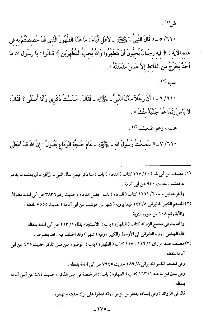 (¬3) مصنف عبد الرزاق 1/ 116، 117 كتاب (الطهارة) باب: الوضوء من مس الذكر حديث 425 عن أبى أمامة بلفظه.