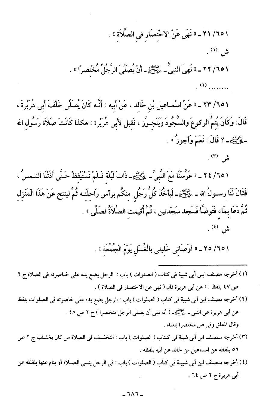 651/ 22 - "نَهىَ النبيُّ - صلى الله عليه وسلم - أَنْ يُصَلِّىَ الرَّجُلُ مُخْتِصرًا".