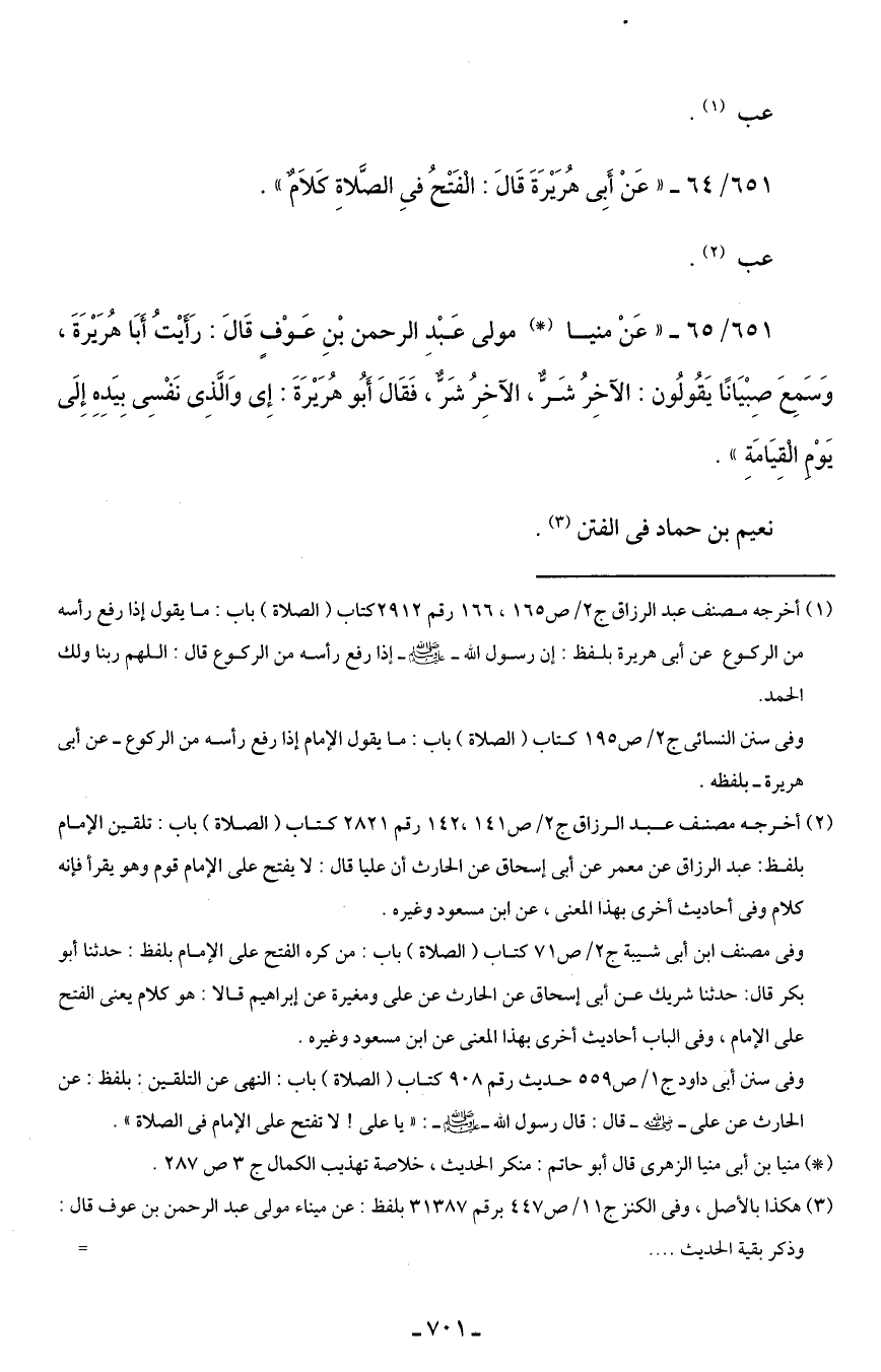 651/ 64 - "عَنْ أَبِى هُرَيْرَةَ قَالَ: الْفَتْحُ في الصَّلاةِ كَلَامٌ".