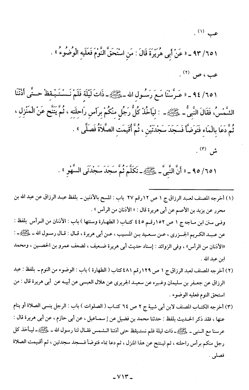 651/ 93 - "عَنْ أَبِى هُرَيْرَةَ قَالَ: مَنِ اسْتَحَقَّ النَّوْمَ فَعَلَيهِ الْوُضُوءُ".