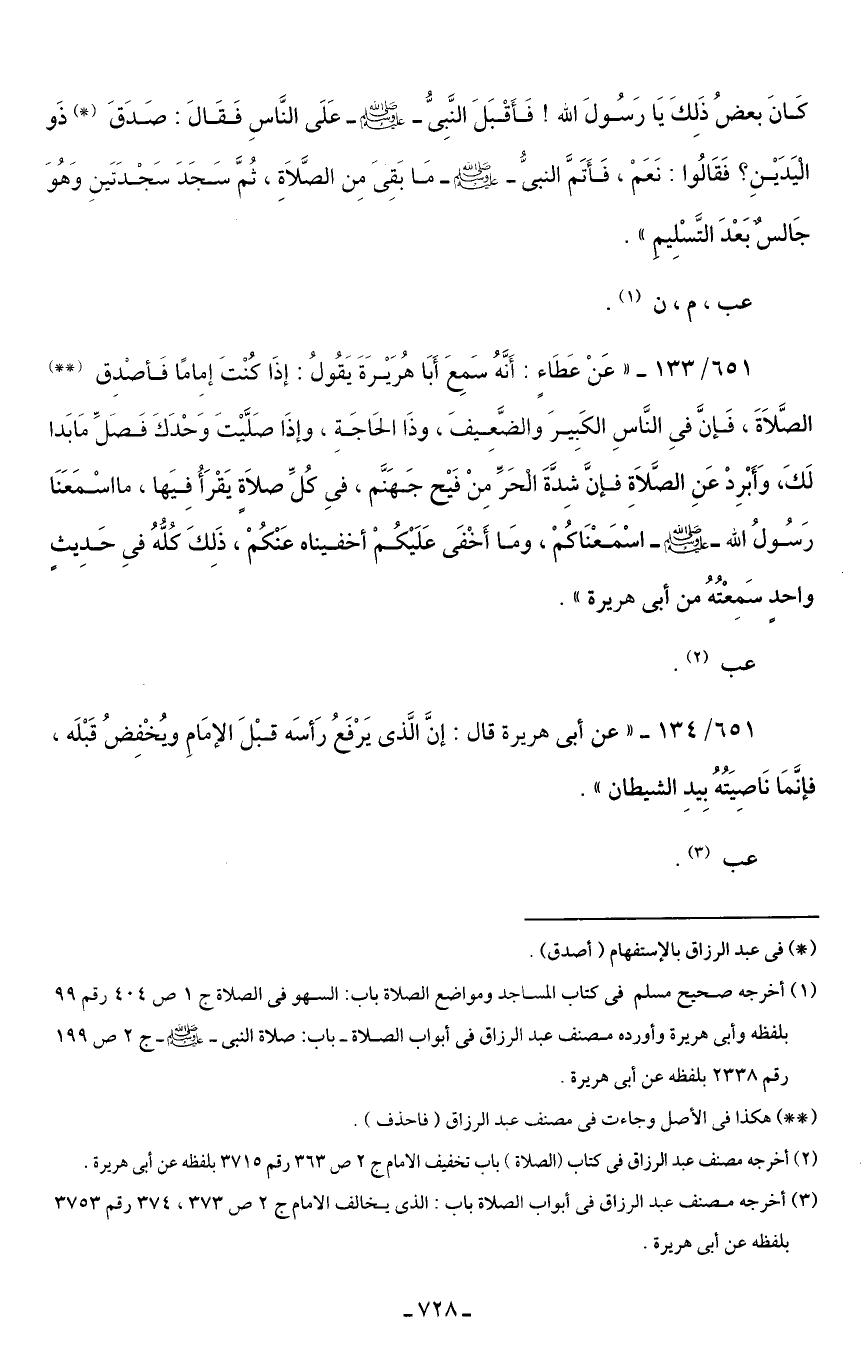 (¬1) أخرجه صحيح مسلم في كتاب المساجد ومواضع الصلاة باب: السهو في الصلاة ج 1 ص 404 رقم 99 بلفظه وأبى هريرة وأورده مصنف عبد الرزاق في أبواب الصلاة -باب: صلاة النبى - صلى الله عليه وسلم - ج 2 ص 199 رقم 2338 بلفظه عن أبى هريرة.
