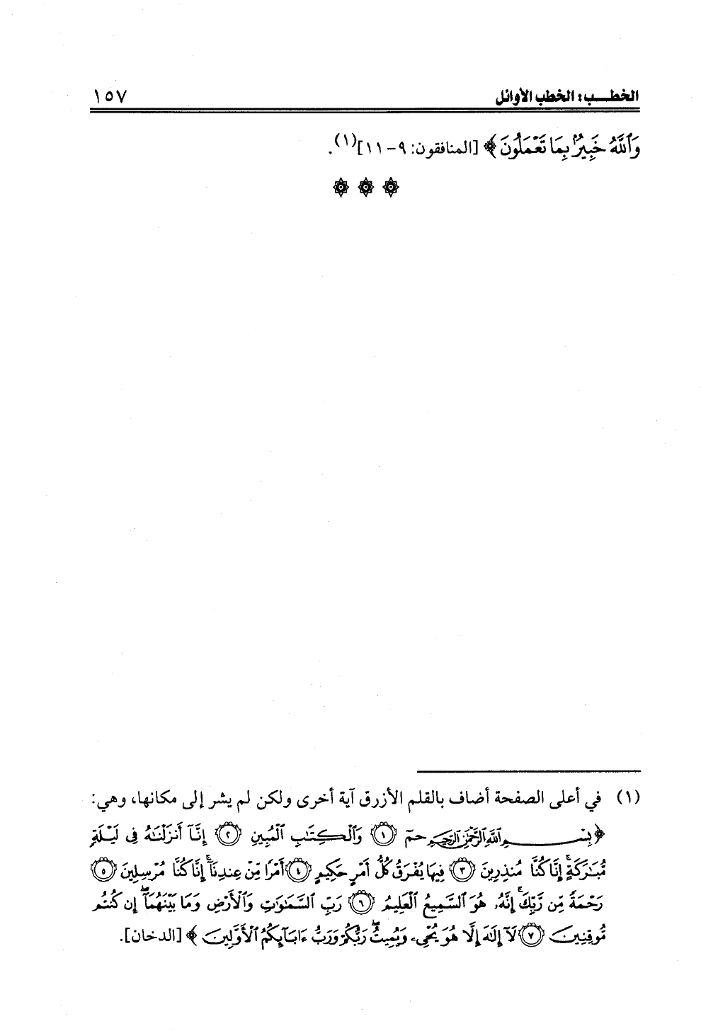 (¬١) في أعلى الصفحة أضاف بالقلم الأزرق آية أخرى ولكن لم يشر إلى مكانها، وهي: {بِسْمِ اللَّهِ الرَّحْمَنِ الرَّحِيمِ حم (١) وَالْكِتَابِ الْمُبِينِ (٢) إِنَّا أَنْزَلْنَاهُ فِي لَيْلَةٍ مُبَارَكَةٍ إِنَّا كُنَّا مُنْذِرِينَ (٣) فِيهَا يُفْرَقُ كُلُّ أَمْرٍ حَكِيمٍ (٤) أَمْرًا مِنْ عِنْدِنَا إِنَّا كُنَّا مُرْسِلِينَ (٥) رَحْمَةً مِنْ رَبِّكَ إِنَّهُ هُوَ السَّمِيعُ الْعَلِيمُ (٦) رَبِّ السَّمَاوَاتِ وَالْأَرْضِ وَمَا بَيْنَهُمَا إِنْ كُنْتُمْ مُوقِنِينَ (٧) لَا إِلَهَ إِلَّا هُوَ يُحْيِي وَيُمِيتُ رَبُّكُمْ وَرَبُّ آبَائِكُمُ الْأَوَّلِينَ} [الدخان].