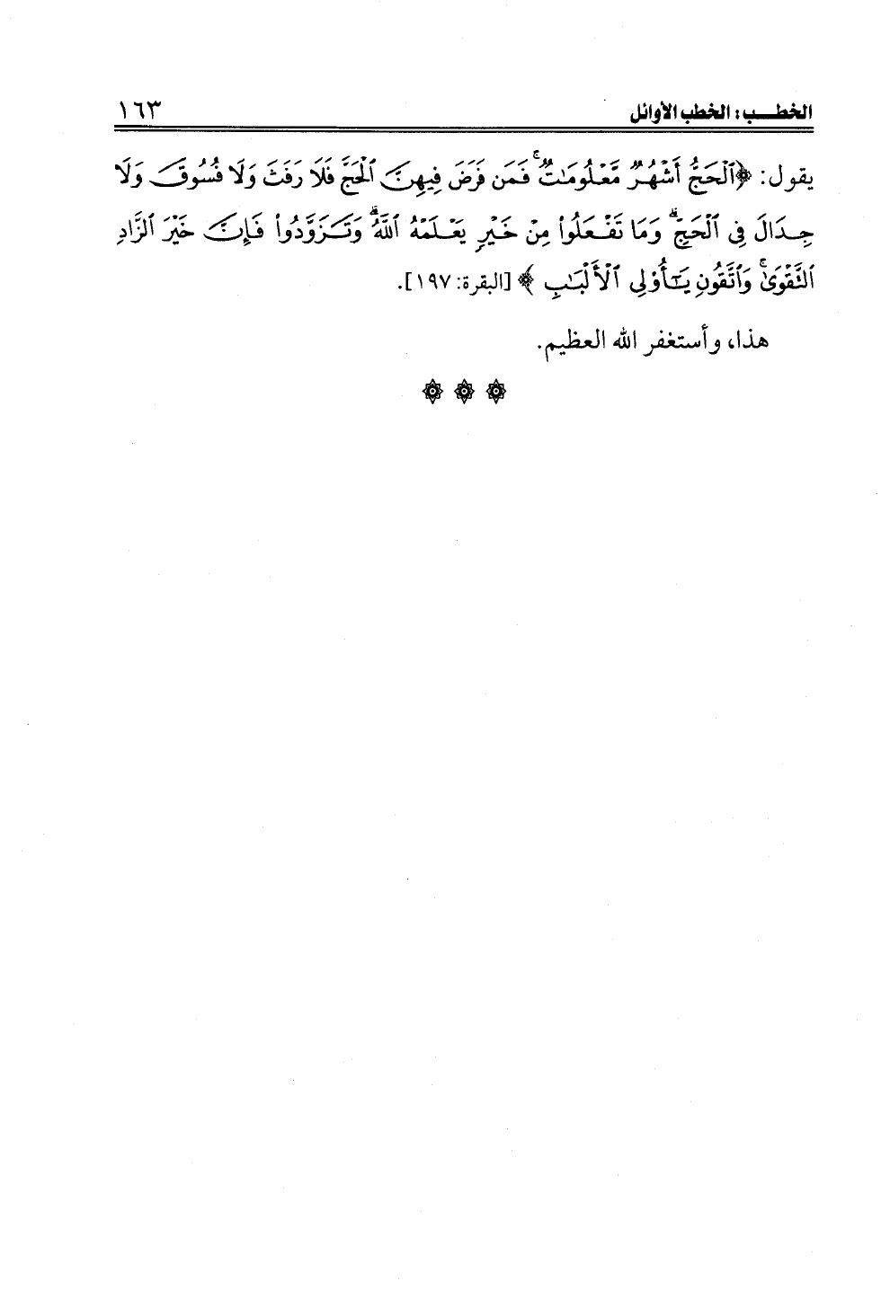 يقول: {الْحَجُّ أَشْهُرٌ مَعْلُومَاتٌ فَمَنْ فَرَضَ فِيهِنَّ الْحَجَّ فَلَا رَفَثَ وَلَا فُسُوقَ وَلَا جِدَالَ فِي الْحَجِّ وَمَا تَفْعَلُوا مِنْ خَيْرٍ يَعْلَمْهُ اللَّهُ وَتَزَوَّدُوا فَإِنَّ خَيْرَ الزَّادِ التَّقْوَى وَاتَّقُونِ يَاأُولِي الْأَلْبَابِ} [البقرة: ١٩٧].