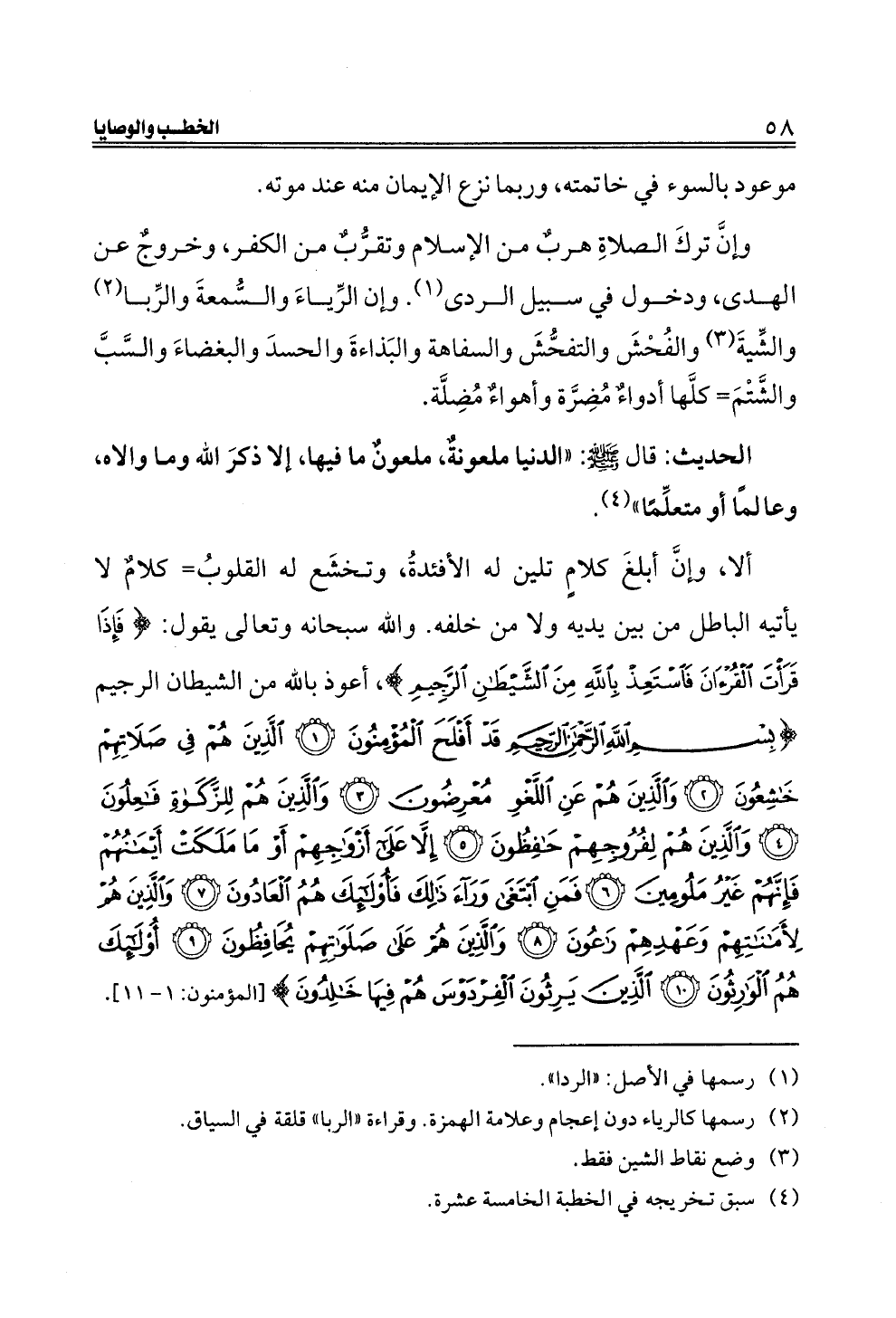 (¬٤) سبق تخريجه في الخطبة الخامسة عشرة.