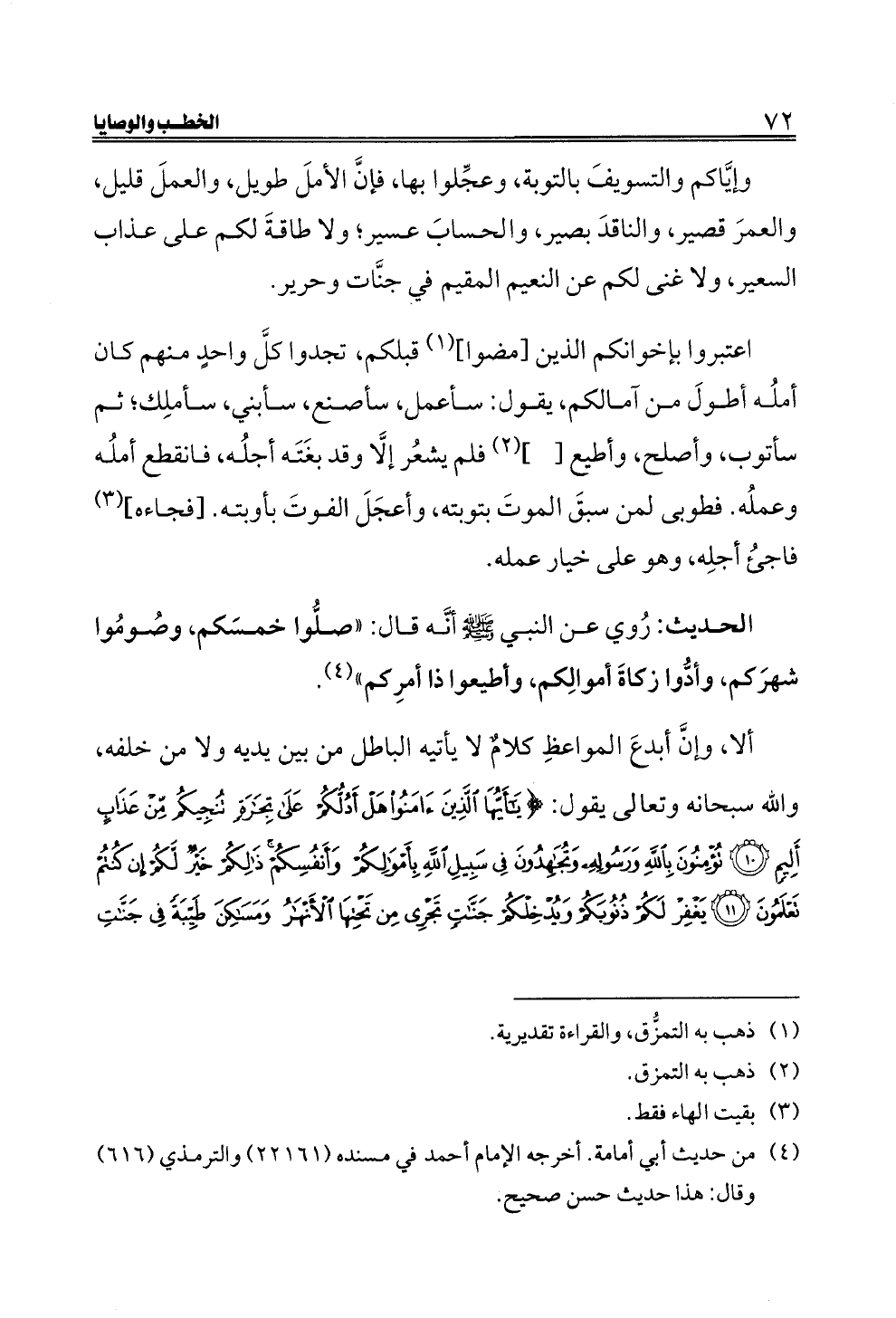 (¬٤) من حديث أبي أمامة. أخرجه الإمام أحمد في مسنده (٢٢١٦١) والترمذي (٦١٦) وقال: هذا حديث حسن صحيح.