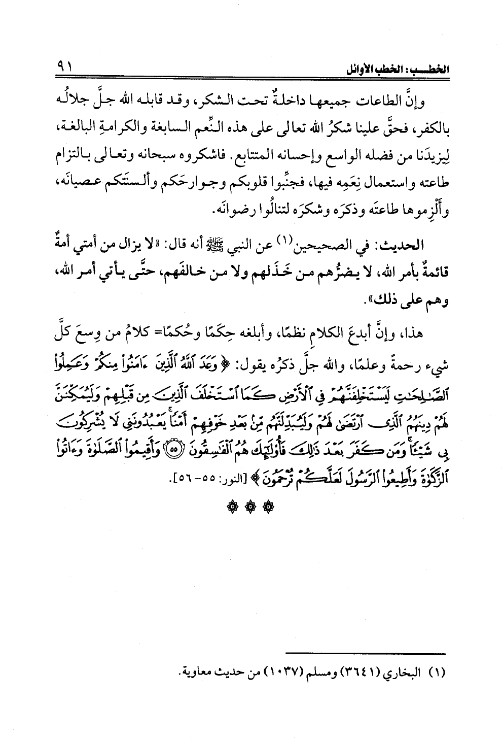 (¬١) البخاري (٣٦٤١) ومسلم (١٠٣٧) من حديث معاوية.