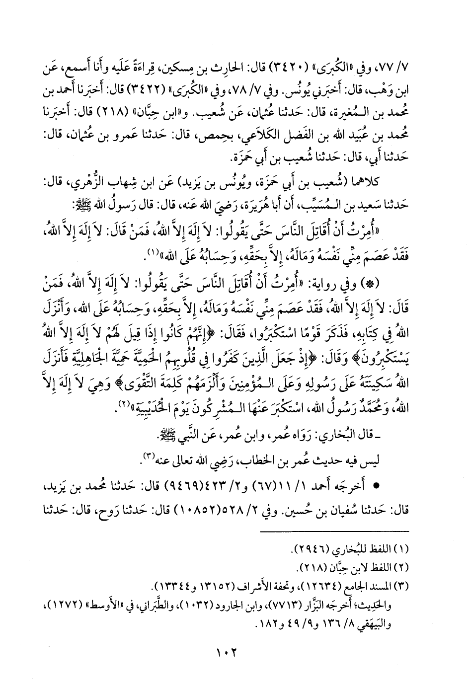 «أمرت أن أقاتل الناس حتى يقولوا: لا إله إلا الله، فإذا قالوها عصموا مني دماءهم وأموالهم، إلا بحقها، وحسابهم على الله، عز وجل.