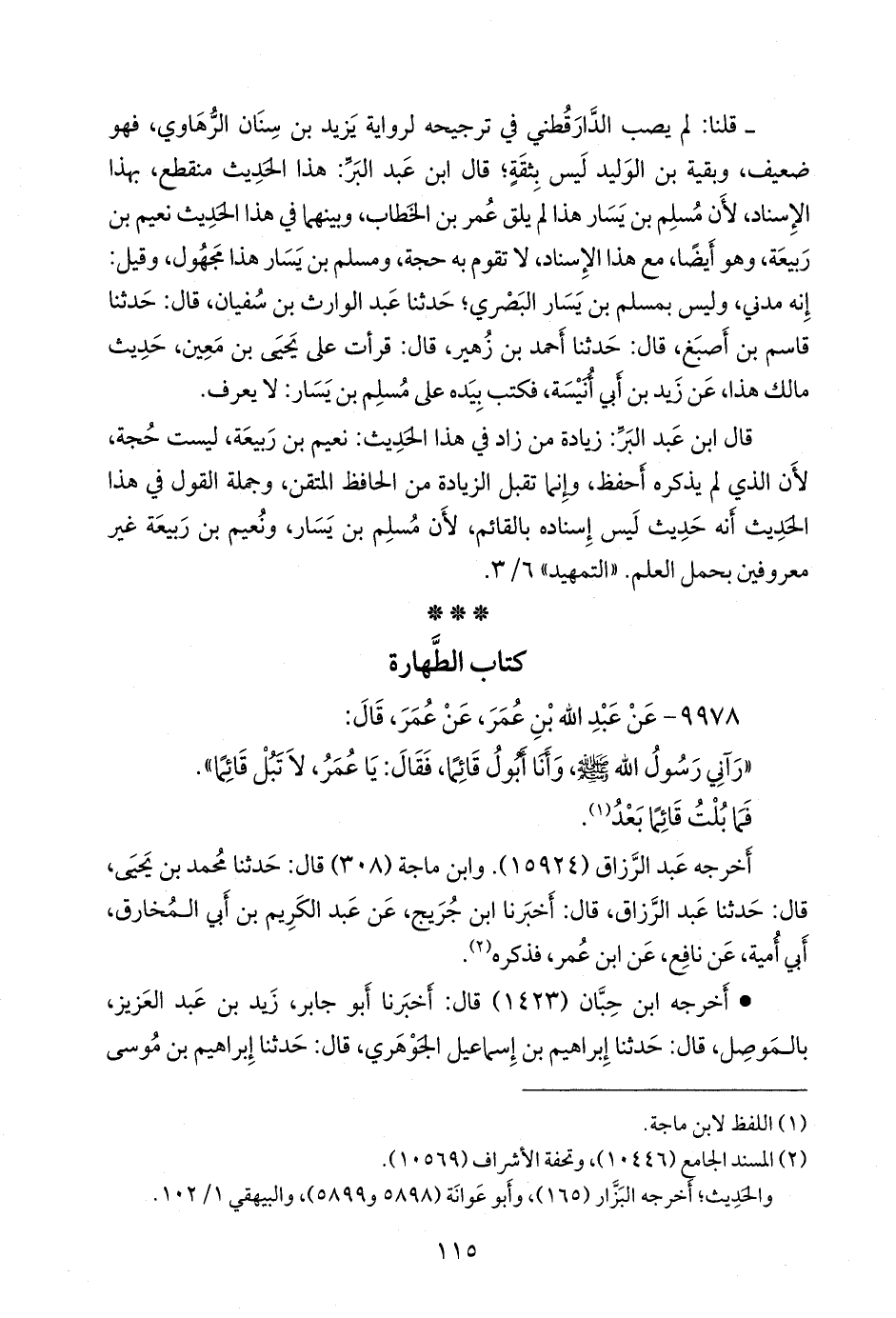 • وأخرجه ابن أبي شيبة (١٣٣٣) قال: حدثنا ابن إدريس، وابن نُمير، عن عُبيد الله بن عمر، عن نافع، عن ابن عمر، عن عمر، قال: ما بلت قائمًا منذ أسلمت. «موقوف» (¬١).