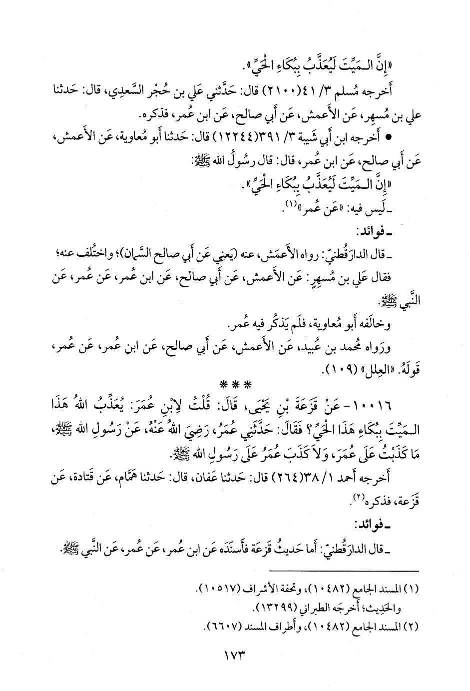- قال الدارقُطني: أما حديث قزعة فأسنده عن ابن عمر، عن عمر، عن النبي صَلى الله عَليه وسَلم.
