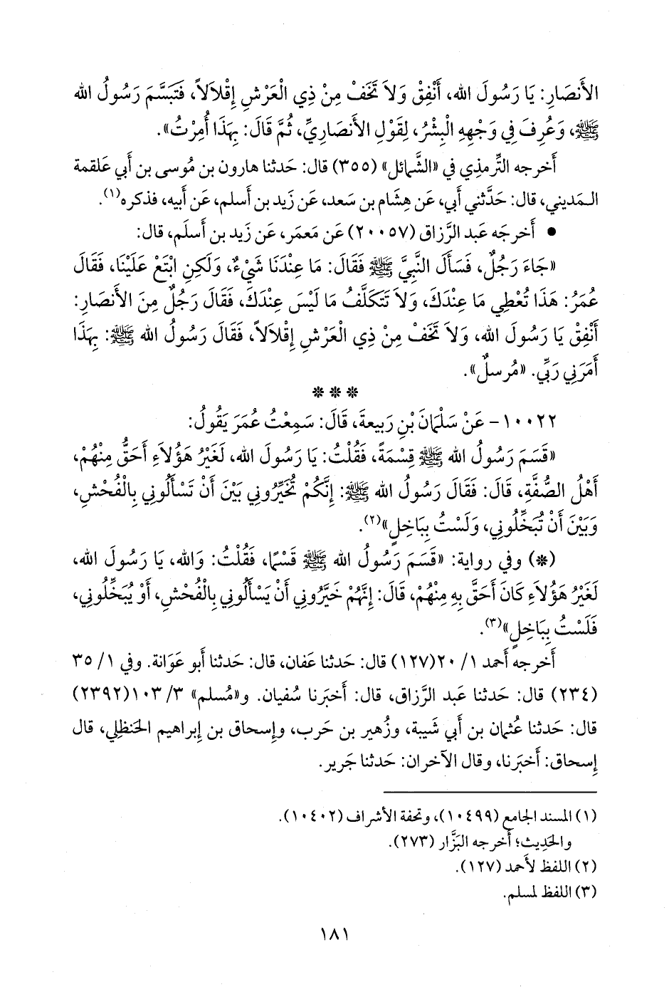 - وفي رواية: «قسم رسول الله صَلى الله عَليه وسَلم قسما، فقلت: والله، يا رسول الله، لغير هؤلاء كان أحق به منهم، قال: إنهم خيروني أن يسألوني بالفحش، أو يبخلوني، فلست بباخل» (¬٢).