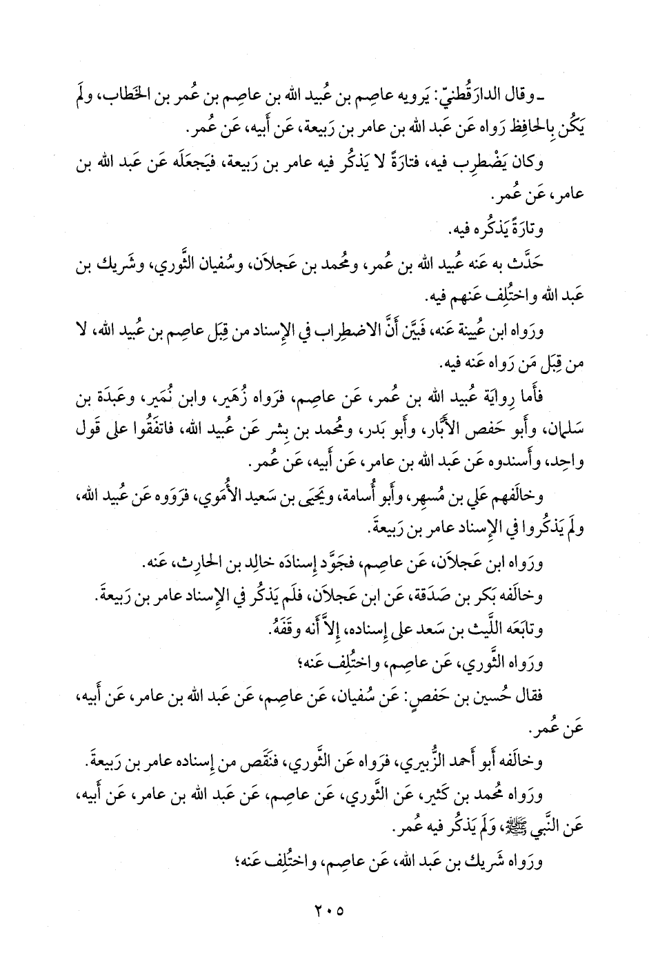 ورواه سفيان بن عُيينة، عن عاصم، فجود إسناده، وبين أن عاصما كان يضطرب فيه، فمرة ينقص من إسناده رجلا ومرة يزيد فيه، ومرة يقفه على عمر.