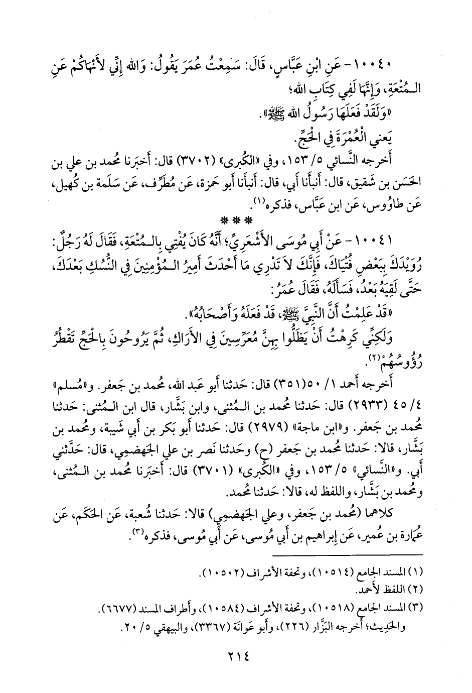 ١٠٠٤٠ - عن عبد الله بن عباس، قال: سمعت عمر يقول: والله إني لأنهاكم عن المتعة، وإنها لفي كتاب الله؛