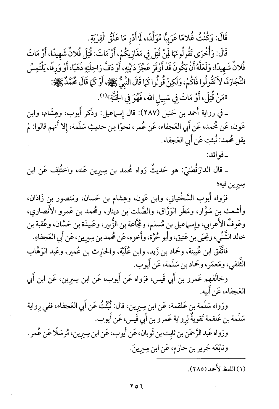 فإن كان عَمرو بن أبي قيس، حفظه عن أيوب، فيشبه أن يكون ابن سِيرين سمعه من أبي العجفاء، وحفظه عن ابن أبي العجفاء، عن أبيه، والله أعلم.