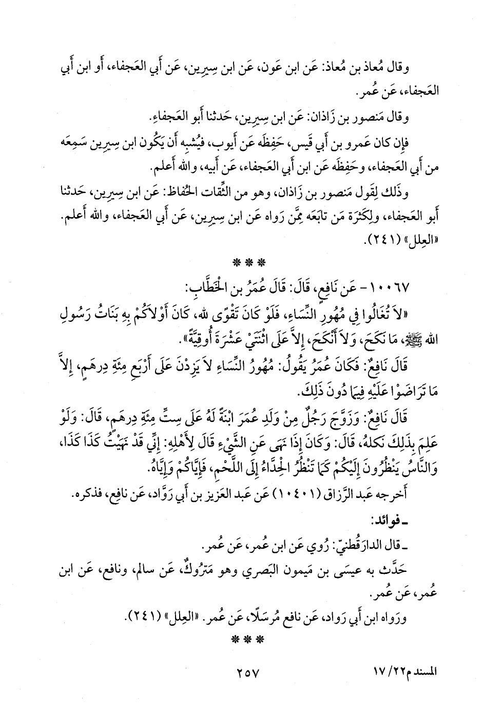 ورواه ابن أبي رَوَّاد، عن نافع مرسلا، عن عمر. «العلل» (٢٤١).