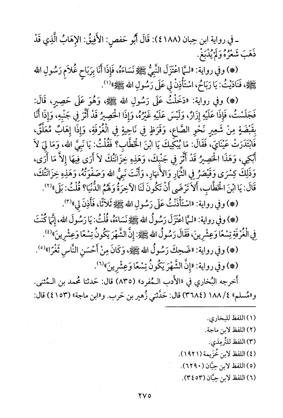 - وفي رواية: «لما اعتزل النبي صَلى الله عَليه وسَلم نساءه، فإذا أنا برباح غلام رسول الله صَلى الله عَليه وسَلم فناديت: يا رباح، استأذن لي على رسول الله صَلى الله عَليه وسَلم» (¬١).