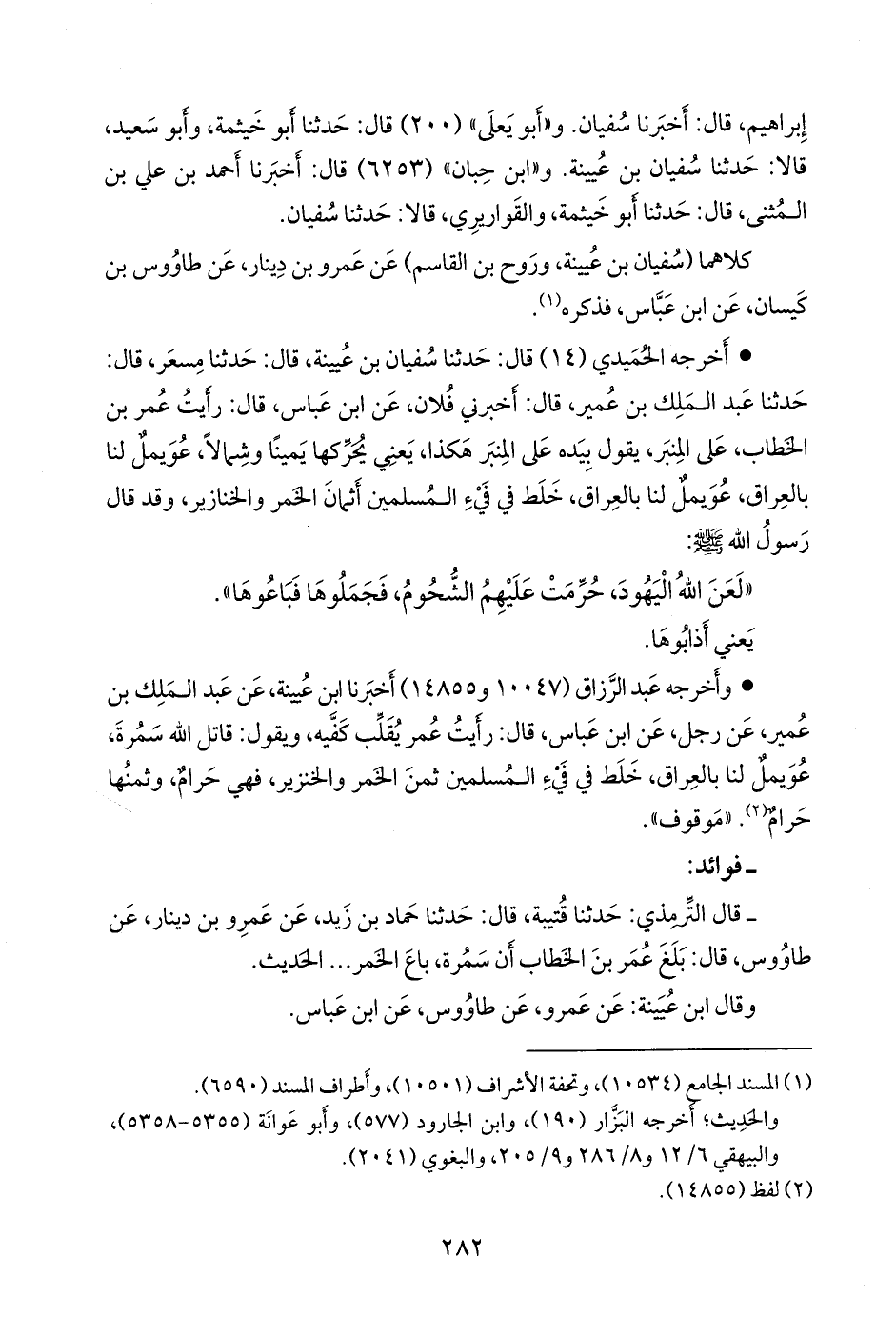 - قال التِّرمِذي: حدثنا قتيبة، قال: حدثنا حماد بن زيد، عن عَمرو بن دينار، عن طاووس، قال: بلغ عمر بن الخطاب أن سمرة، باع الخمر، الحديث.