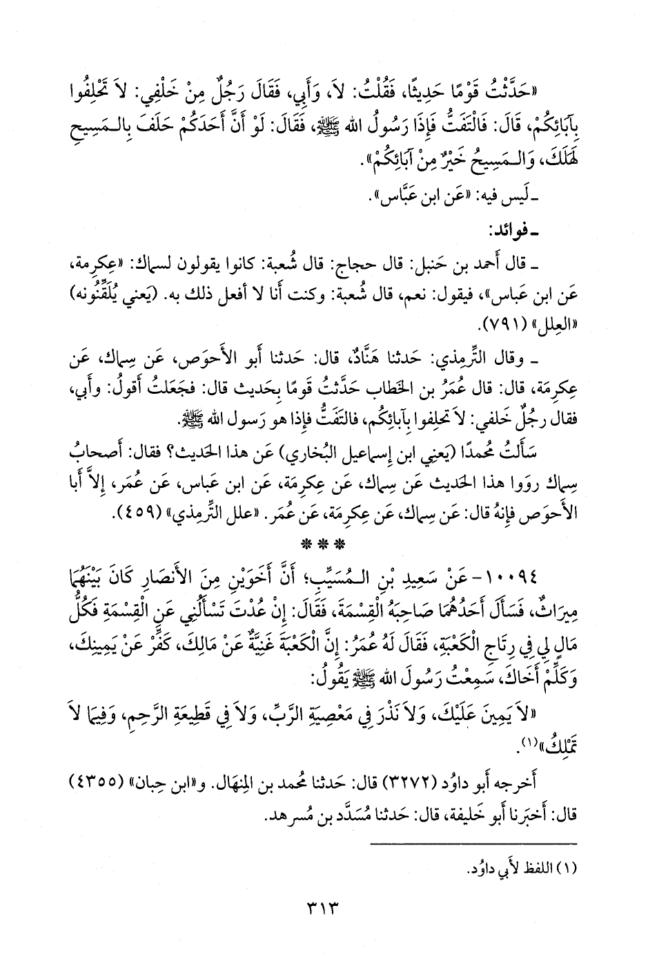 كلاهما (ابن المنهال، ومُسَدَّد) عن يزيد بن زُريع، قال: حدثنا حبيب المعلم، عن عَمرو بن شعيب، عن سعيد بن المُسَيب، فذكره (¬٢).