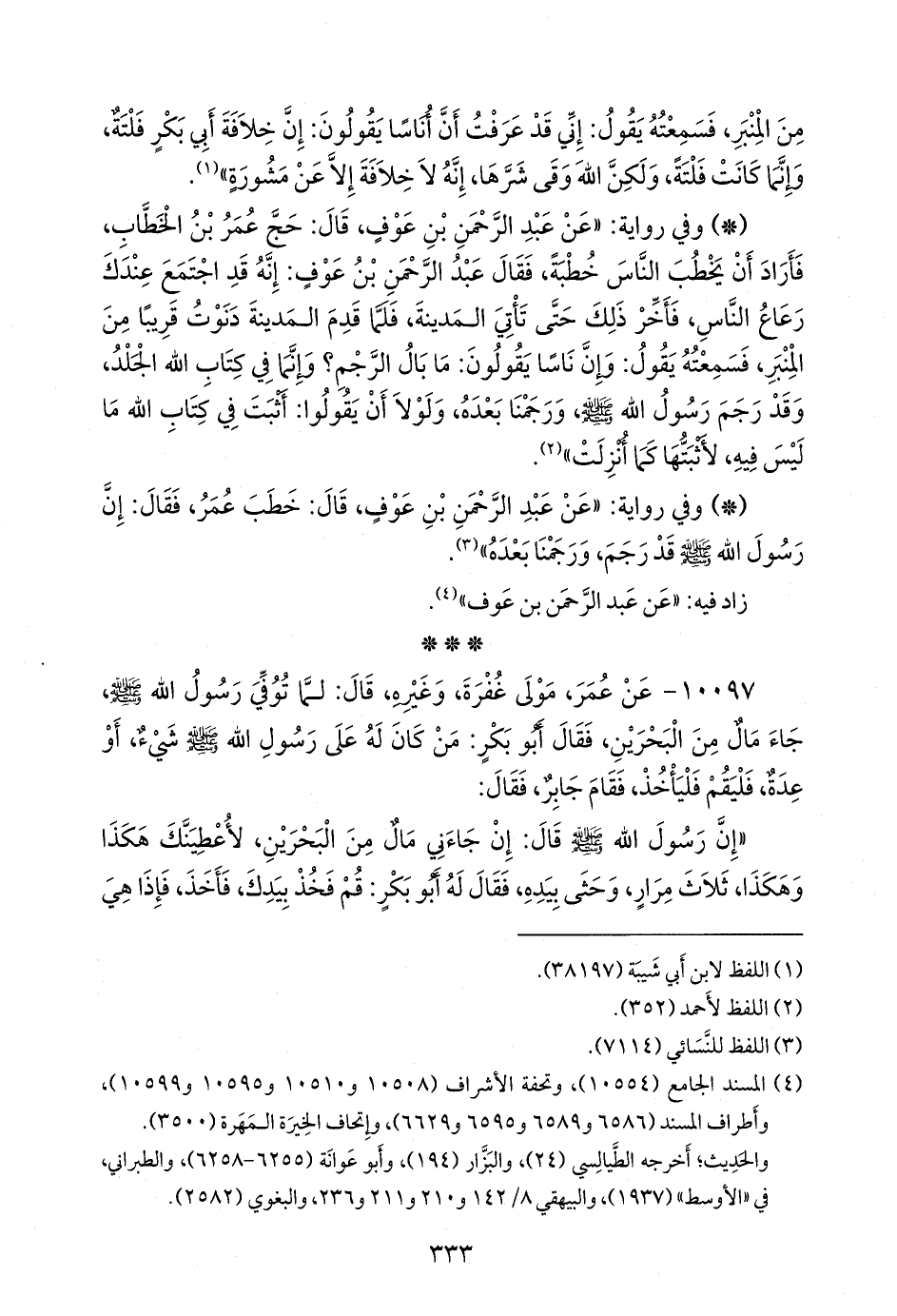 فعمل عمر بن الخطاب، ففتح الفتوح، وجاءته الأموال، فقال: إن أبا بكر رأى في هذا الأمر رأيا, ولي فيه رأي آخر، لا أجعل من قاتل رسول الله صَلى الله عَليه وسَلم كمن قاتل معه, ففرض للمهاجرين والأنصار، ممن شهد بَدرًا، خمسة آلاف، خمسة آلاف, وفرض لمن كان له إسلام كإسلام أهل بدر، ولم يشهد بَدرًا، أربعة آلاف، أربعة آلاف.