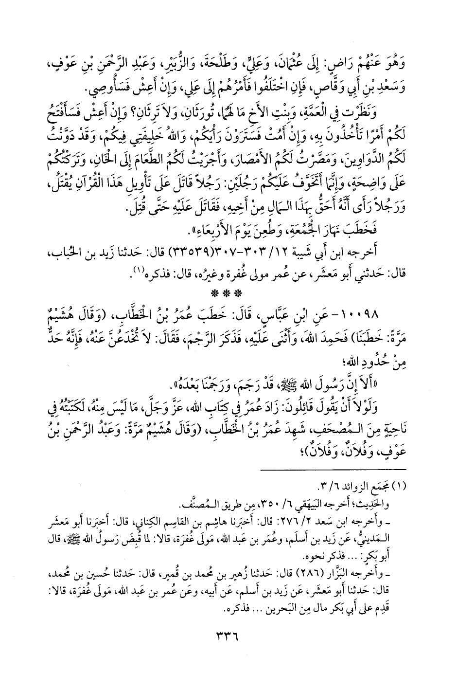ولولا أن يقول قائلون: زاد عمر في كتاب الله، عز وجل، ما ليس منه، لكتبته في ناحية من المصحف، شهد عمر بن الخطاب، (وقال هُشيم مرة: وعبد الرَّحمَن بن عوف، وفلان، وفلان)؛