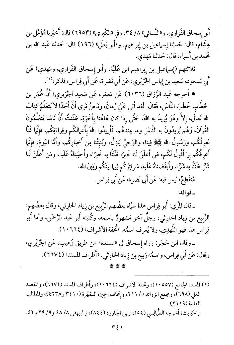 - قال المِزِّي: أَبو فراس هذا سماه بعضهم الربيع بن زياد الحارثي، وقال بعضهم: الربيع بن زياد الحارثي، رجل آخر مشهور باسمه، وكنيته أَبو عبد الرَّحمَن، وأما أَبو فراس هذا فهو النهدي، ولا يعرف اسمه. «تحفة الأشراف» (١٠٦٦٤).
