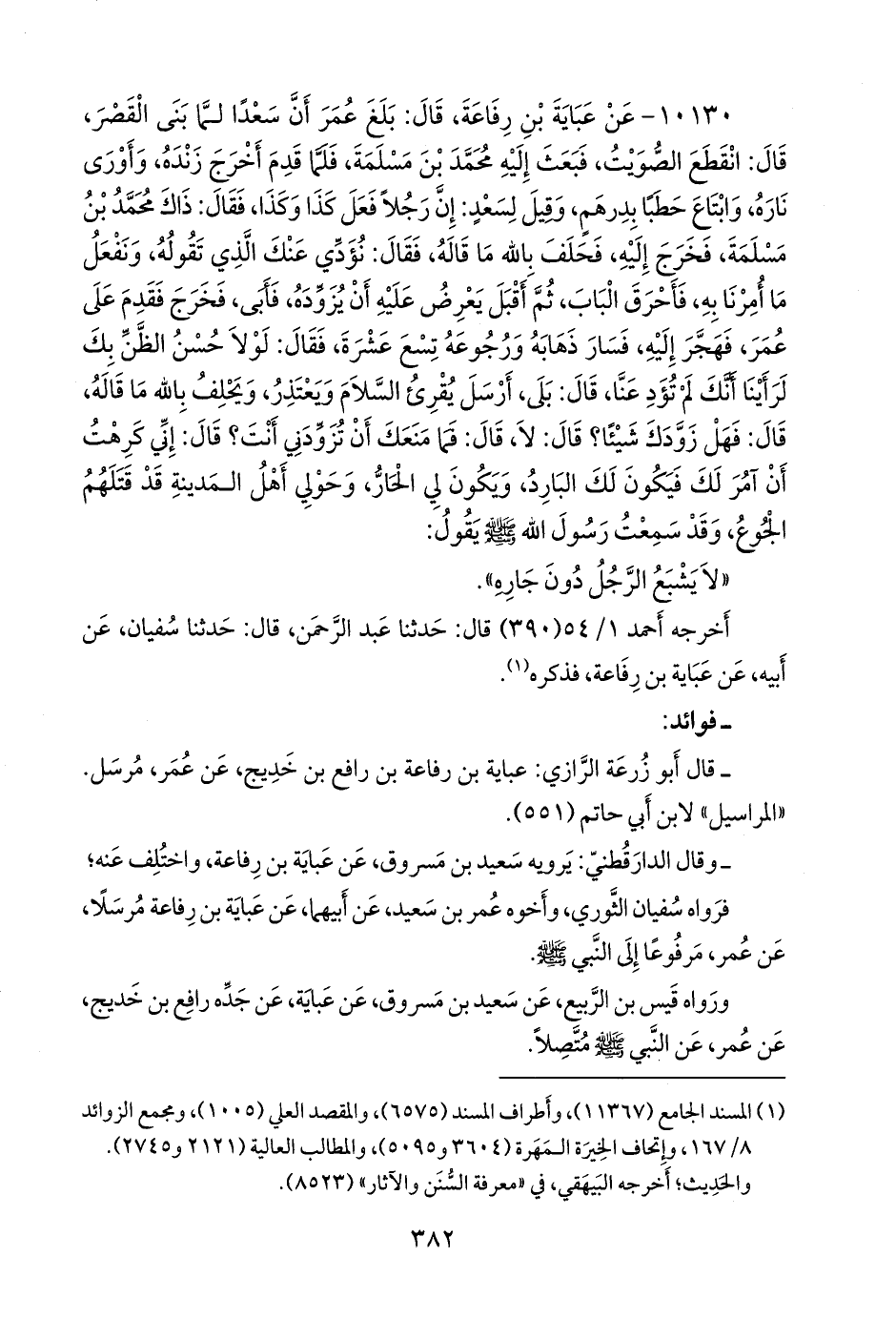 وكذلك رواه ابن المبارك، عن ابن عُيينة، عن عمر بن سعيد، عن أبيه، عن عباية بن رفاعة بن رافع، عن عمر.