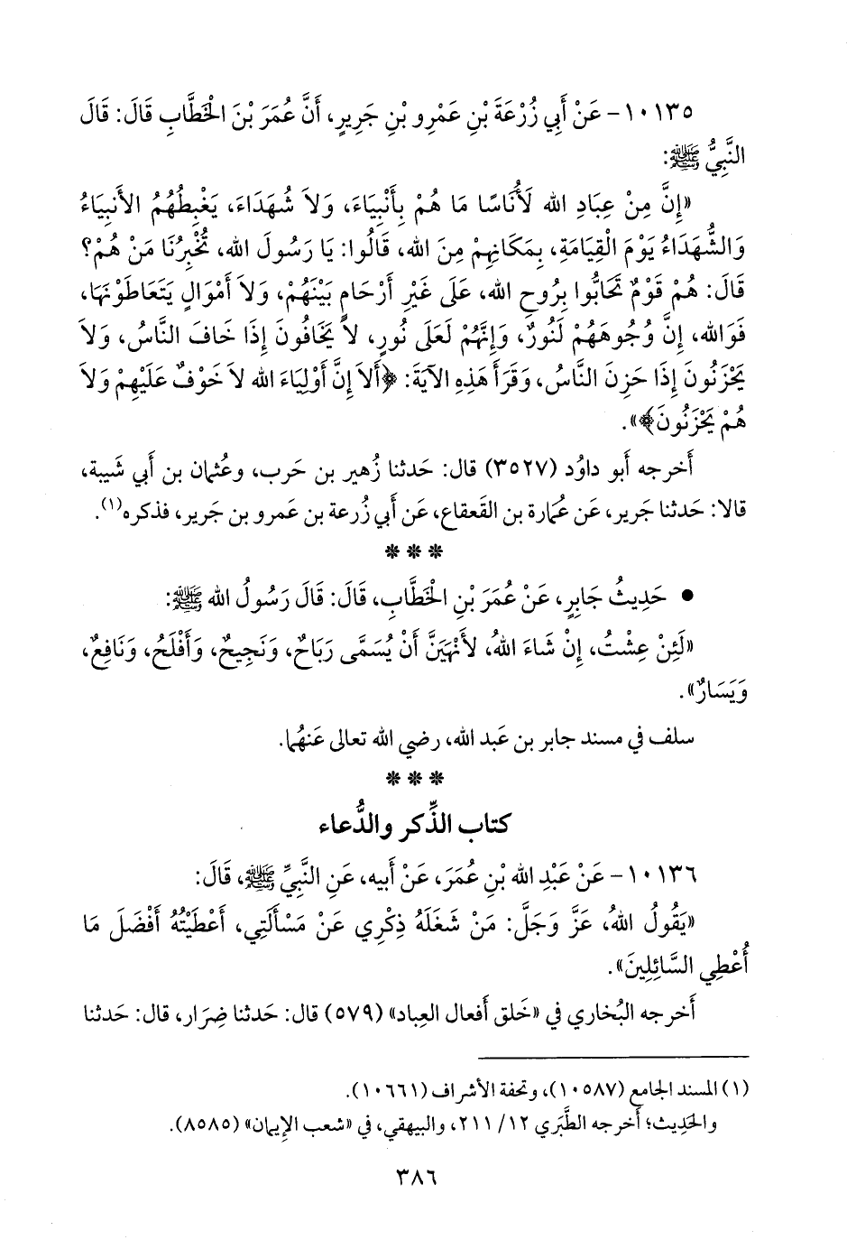 ١٠١٣٥ - عن أَبي زُرعَة بن عَمرو بن جرير، أن عمر بن الخطاب قال: قال النبي صَلى الله عَليه وسَلم: